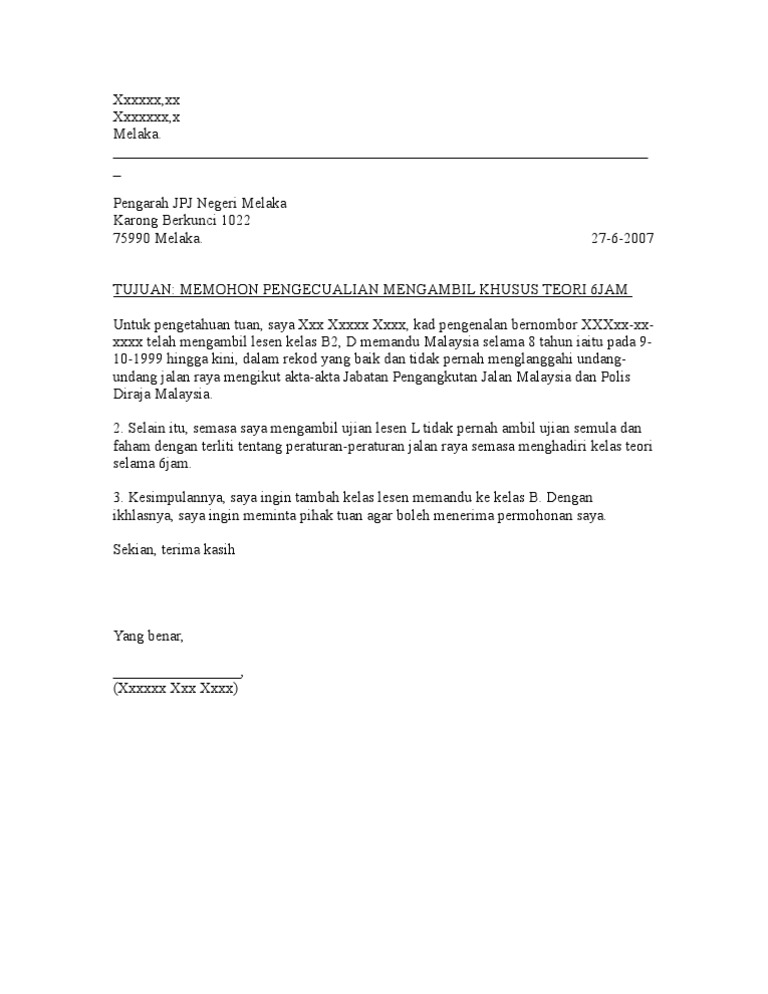 Cnth Format Surat Pelepasan L Utk Belajar Lesen B Pdf